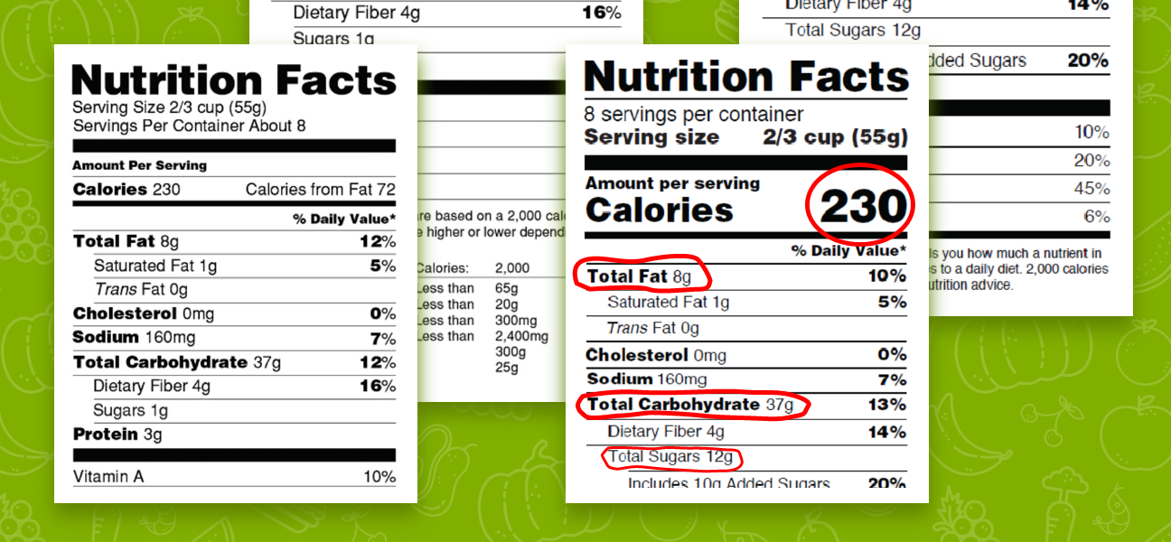 When you look at the nutritional labels, it will give you the amount of total grams of fat, carbs, and proteins PER SERVING.
